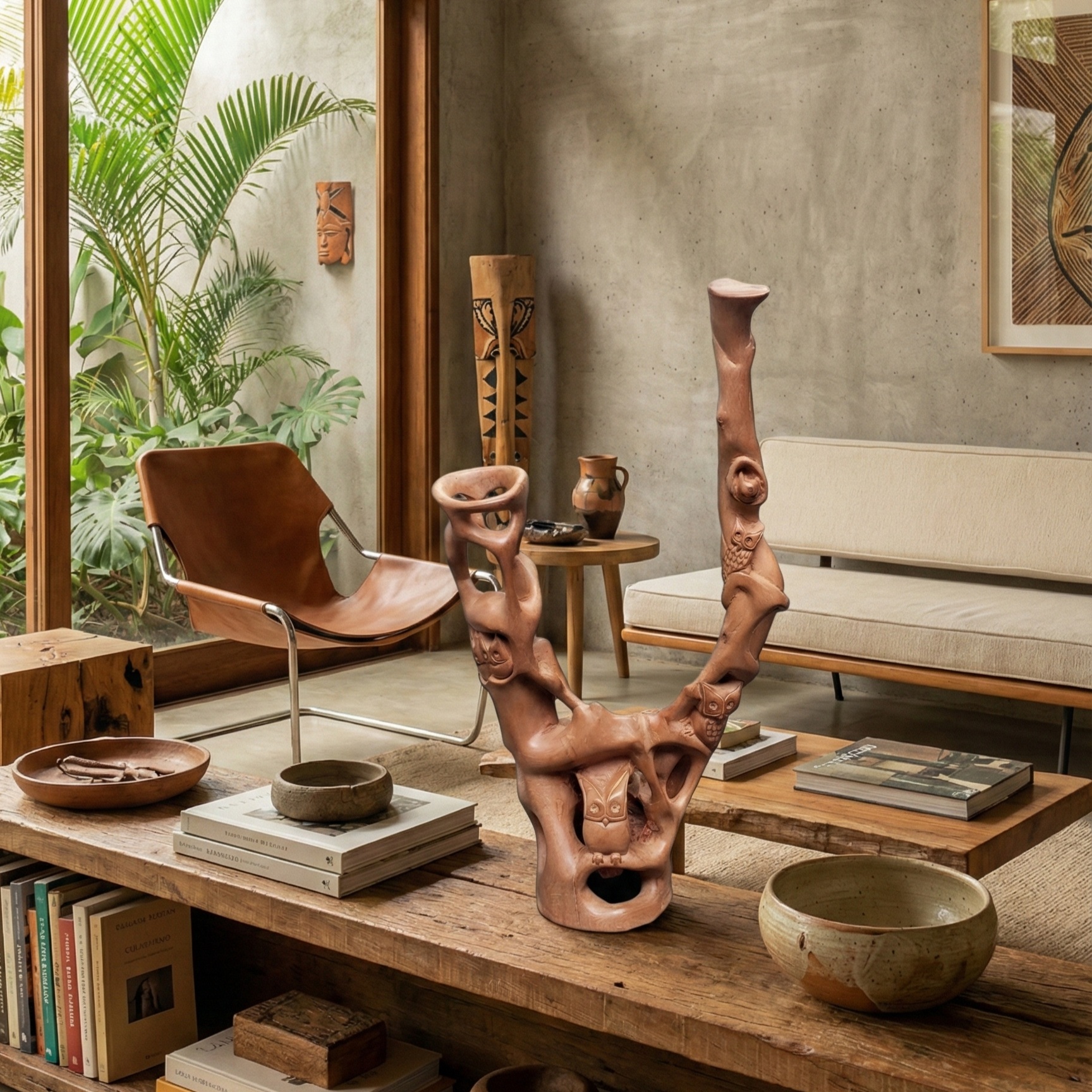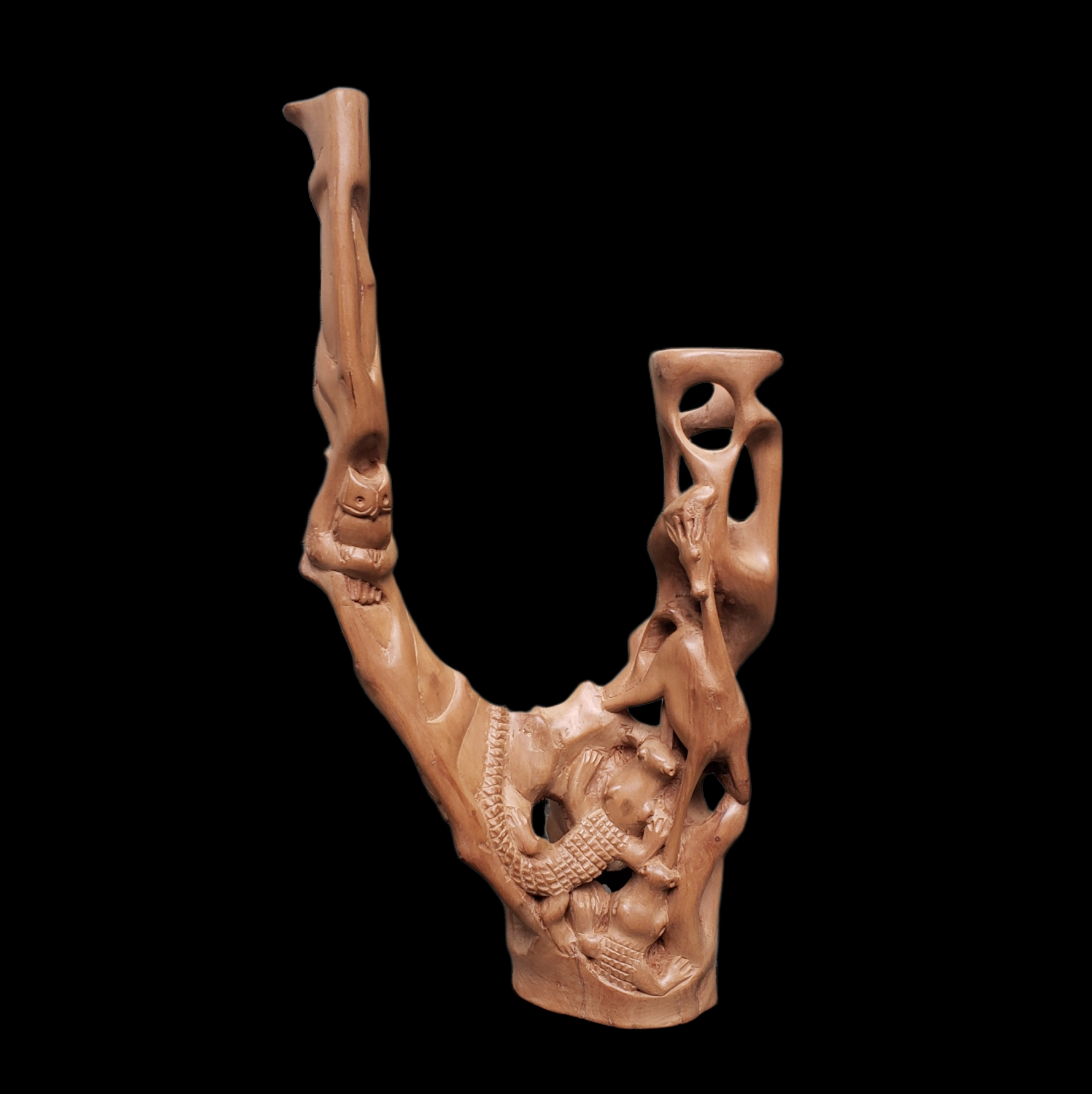 Animais, insetos e bichos imaginários vão sendo esculpidos em pedaços inteiros de madeira, sem qualquer emenda, resultando em peças únicas e inusitadas, que mostram o talento e a imaginação e criatividade do artista, cujas obras são reconhecíveis logo no primeiro olhar.