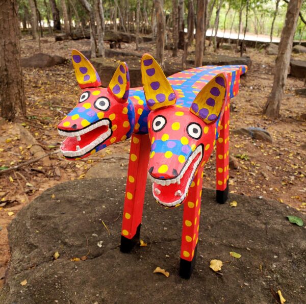 Os cachorros e calangos multicoloridos, sempre sorridentes, são a marca registrada da identidade do artista cearense Antônio Severino