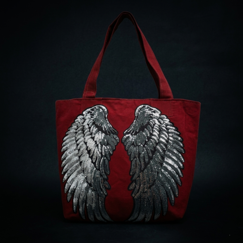 As bolsas de lona com aplicação de asas em paetê são acessórios versáteis que misturam o estilo rústico da lona com o brilho glamouroso das lantejoulas. O material de lona torna a bolsa resistente para o dia a dia ou praia, enquanto o paetê permite que ela seja usada em eventos informais à noite.