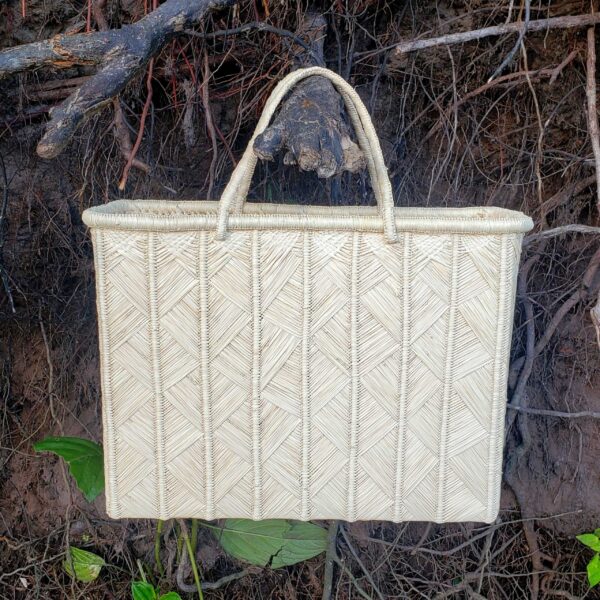 O trabalho da fibra do buriti é uma herança indígena que se tornou uma prática transmitida entre gerações pelas comunidades locais. A árvore nativa do Brasil, sempre foi muito valorizada pelos povos tradicionais que a batizaram de “árvore da vida”. Isso porque da palmeira que alcança de 20 a 30 metros tudo se aproveita – folhas, talos, frutos e sementes. Com a fibra vegetal retirada das folhas, o grupo tece bolsas, chapéus, caminhos de mesa, jogos americanos, e outros objetos de decoração.