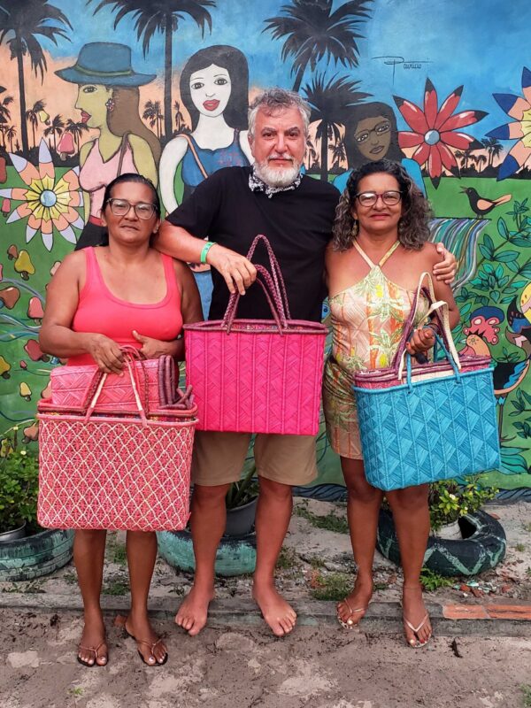 9O trabalho da fibra do buriti é uma herança indígena que se tornou uma prática transmitida entre gerações pelas comunidades locais. A árvore nativa do Brasil, sempre foi muito valorizada pelos povos tradicionais que a batizaram de “árvore da vida”. Isso porque da palmeira que alcança de 20 a 30 metros tudo se aproveita – folhas, talos, frutos e sementes. Com a fibra vegetal retirada das folhas, o grupo tece bolsas, chapéus, caminhos de mesa, jogos americanos, e outros objetos de decoração.