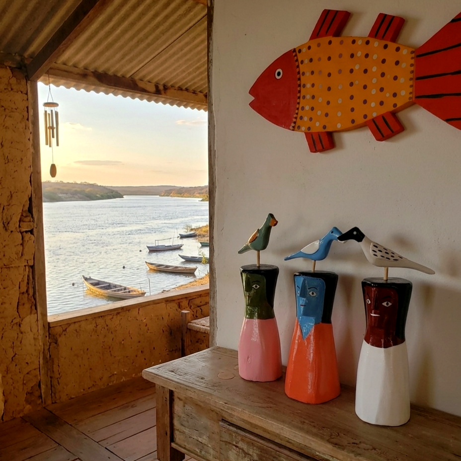 As cabeças coloridas com pássaros em cima são a marca registrada de Cicinho, um dos artistas mais requisitados da Ilha do Ferro, povoado alagoano às margens do Rio São Francisco.
