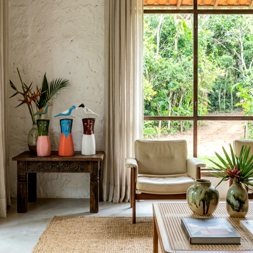 As cabeças coloridas com pássaros em cima são a marca registrada de Cicinho, um dos artistas mais requisitados da Ilha do Ferro, povoado alagoano às margens do Rio São Francisco.
