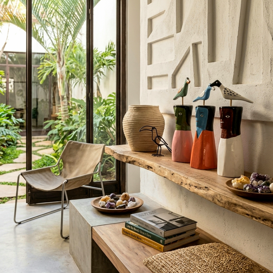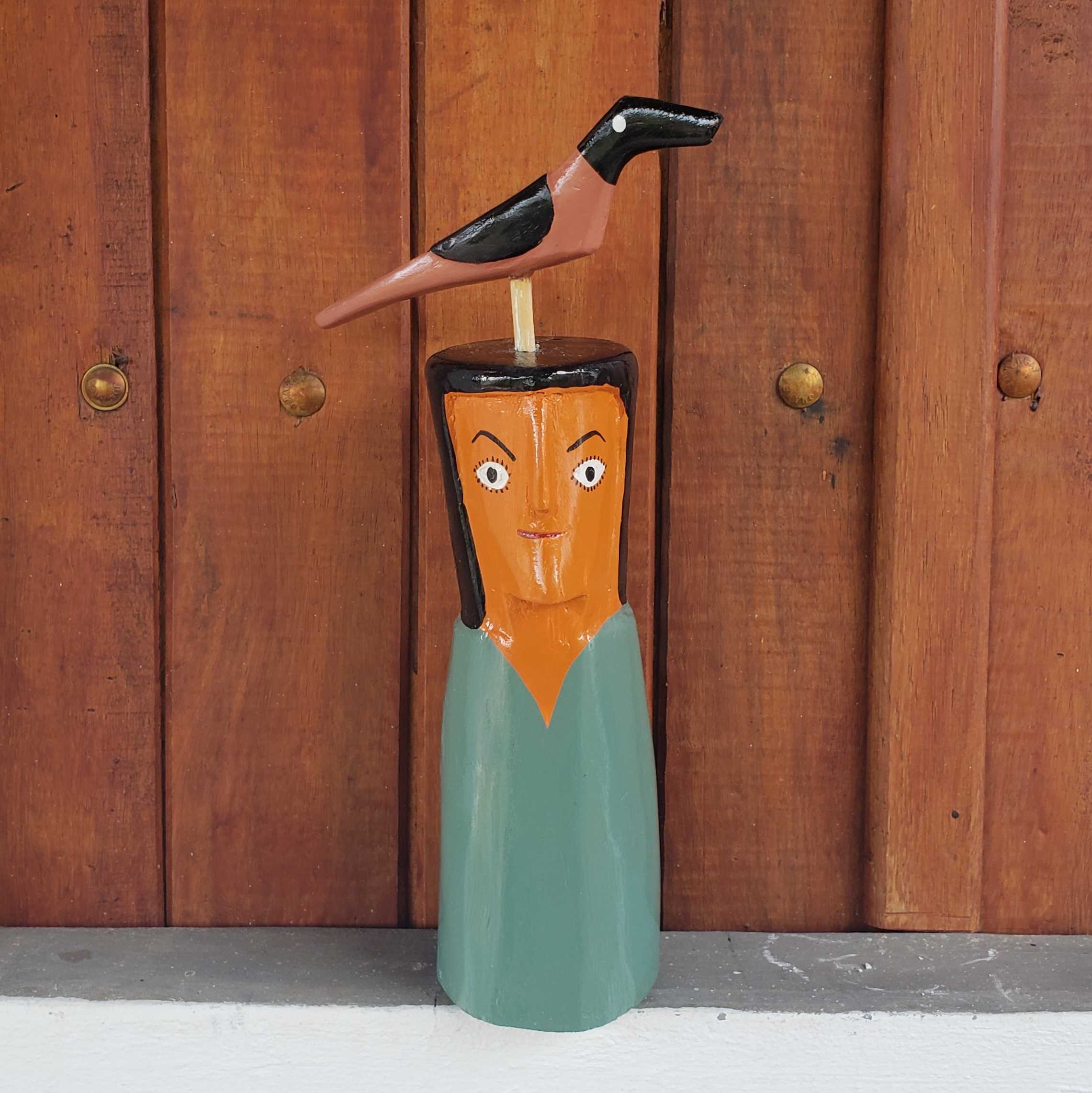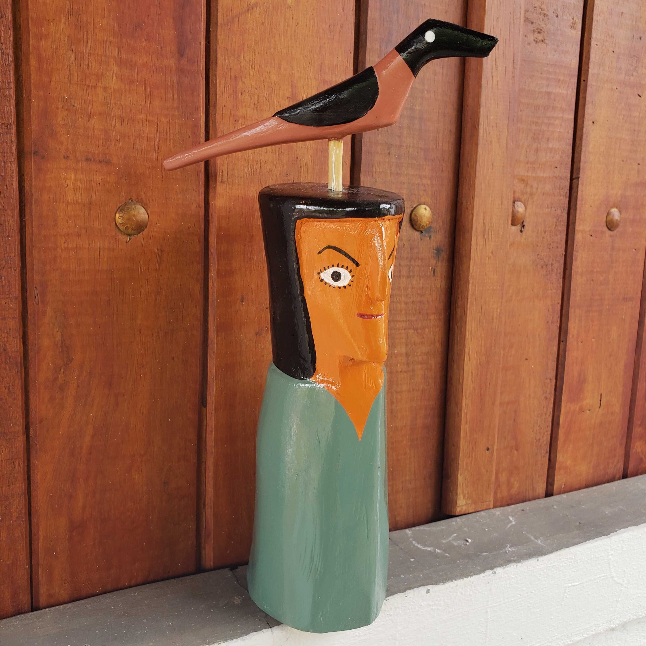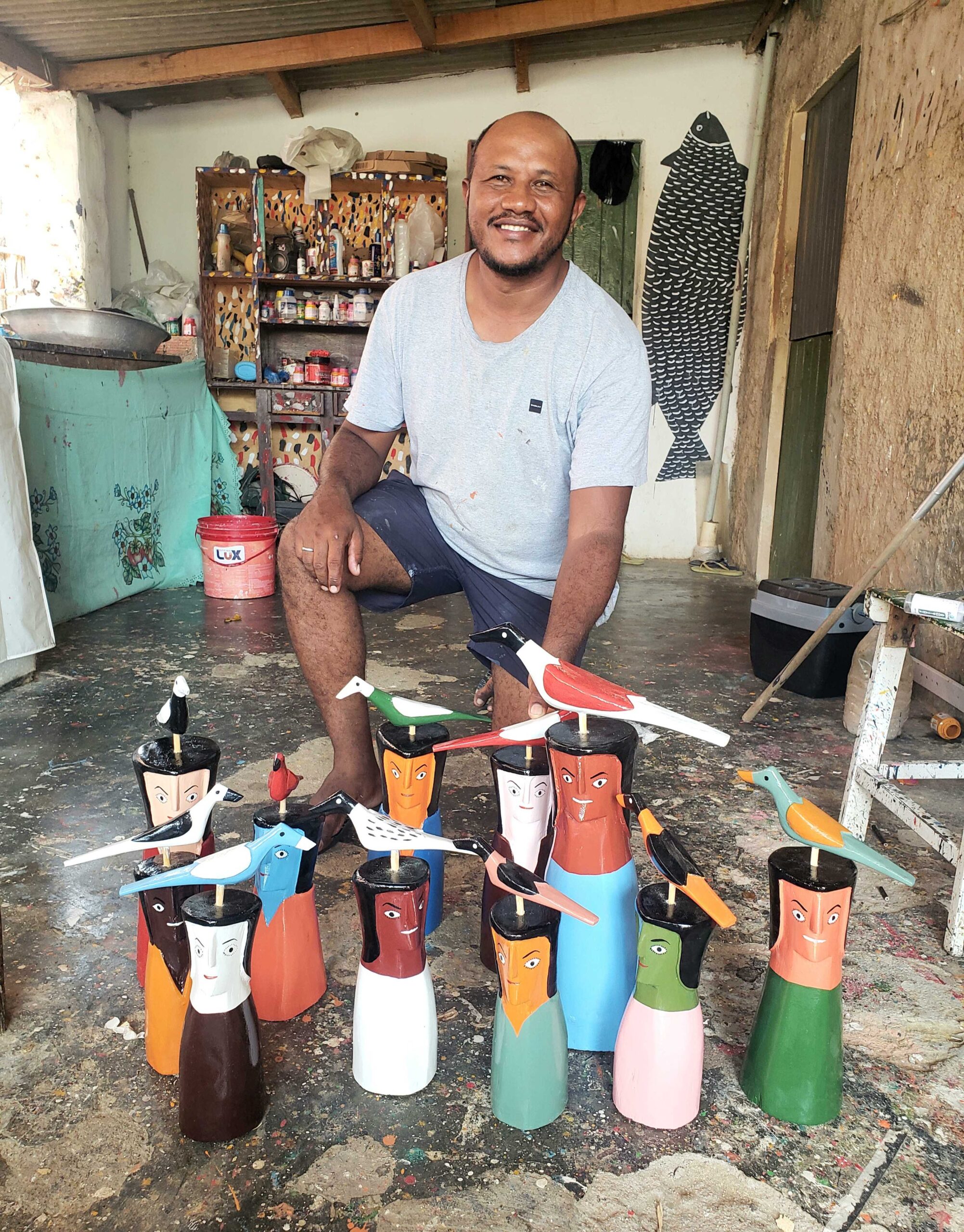 As cabeças coloridas com pássaros em cima são a marca registrada de Cicinho, um dos artistas mais requisitados da Ilha do Ferro, povoado alagoano às margens do Rio São Francisco.