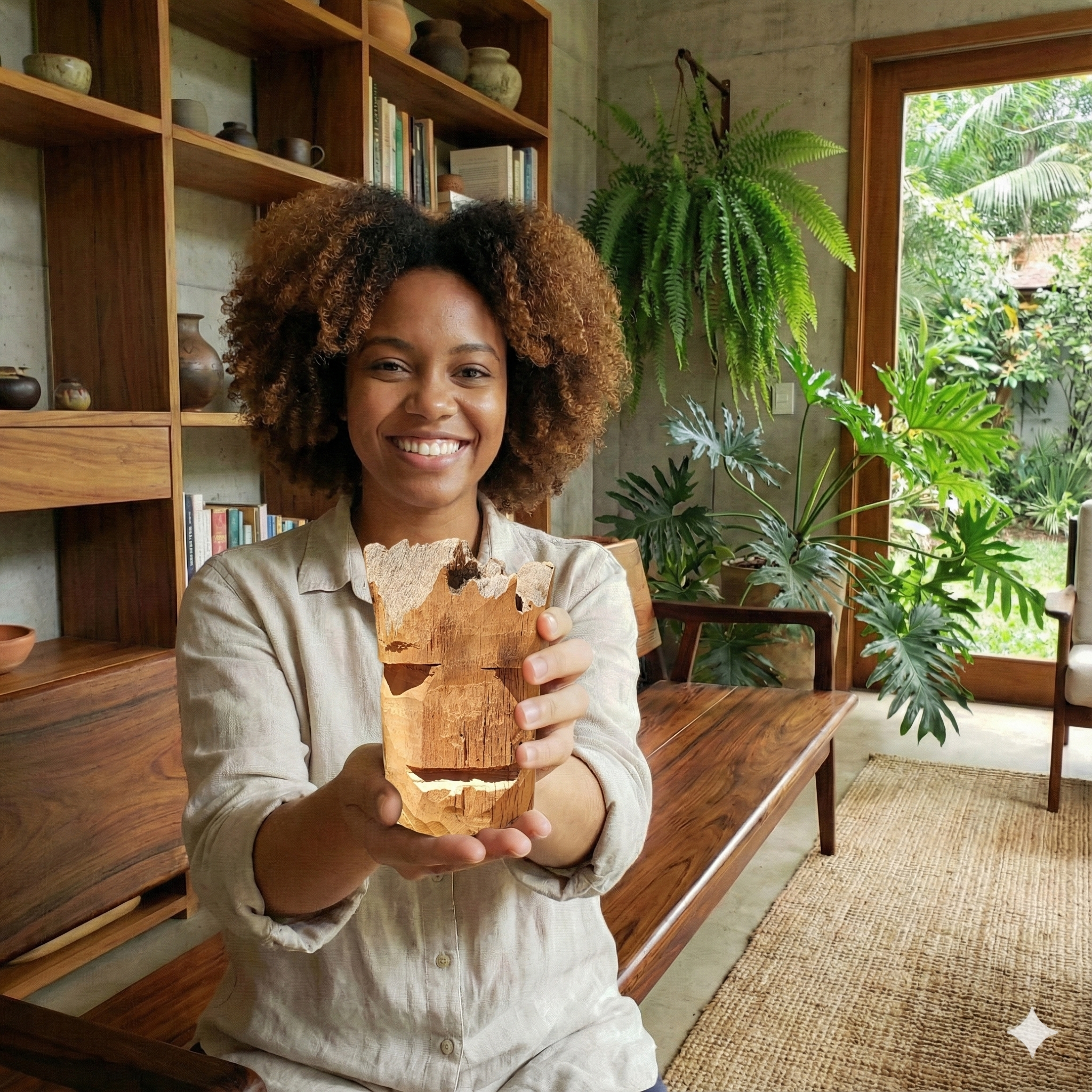 “Ele disse: “A madeira morta na sua mão vai passar a vencer. Porque você tem que lembrar da carne do gato, do peba, do lagarto que você comeu… Em resumo: todos os animais que eu já tinha comido ou vendido na feira pra conseguir o que comer, eu os faria em madeira”