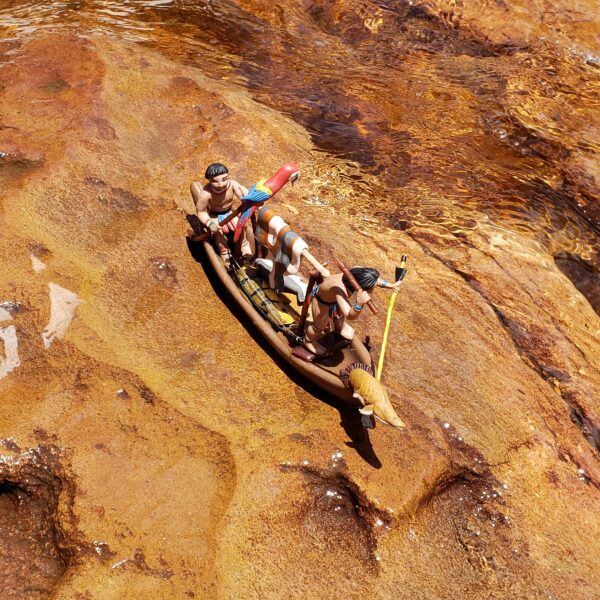 Reprodução de cena do cotidiano, feita em látex de balata por artesão da etnia Macuxi na região de Boa Vista, Roraima.