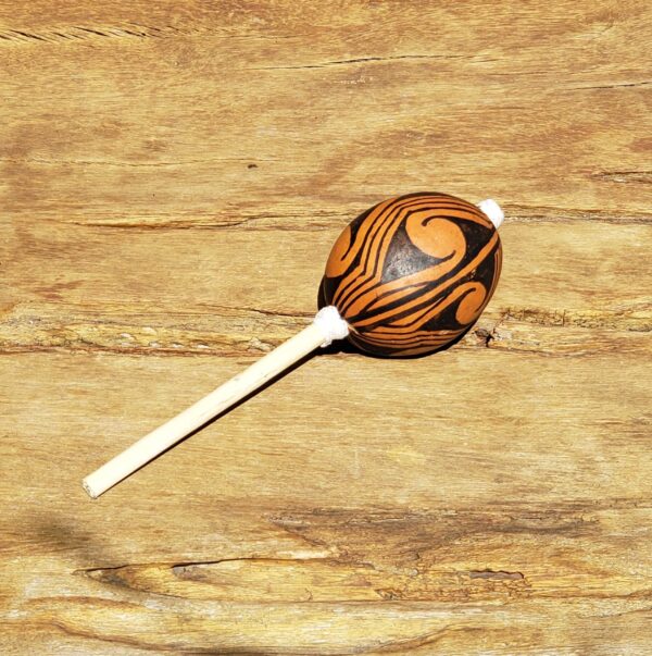 Chocalho em cabaça produzido artesanalmente por artesã do povo Juruna, um grupo indígena do Pará, Brasil, e utilizada na culinária e para outras finalidades cotidianas.
