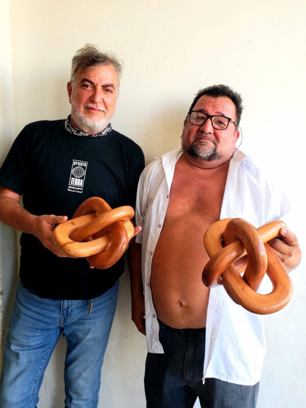O Artesão Luiz Pereira sempre gostou de trabalhar com madeira. Foi em sua marcenaria em Macapá que tomou gosto por fazer peças torneadas que encantam pelo design e qualidade diferenciados, das quais a escultura com os elos entrelaçados é uma de suas obras mais originais.
