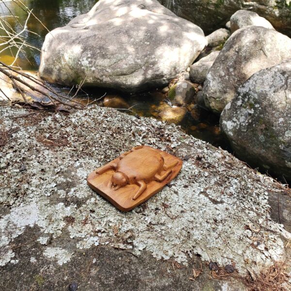Animais, insetos e bichos imaginários vão sendo esculpidos em pedaços inteiros de madeira, sem qualquer emenda, resultando em peças únicas e inusitadas, que mostram o talento e a imaginação e criatividade do artista, cujas obras são reconhecíveis logo no primeiro olhar.
