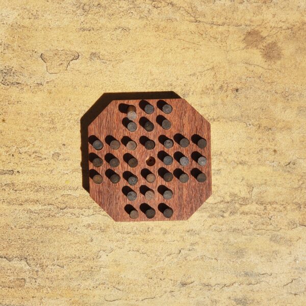 Jogo produzido em madeira em comunidade artesã às margens do Rio Negro (AM) com o reaproveitamento de resíduos de madeiras da construção naval, importante atividade econômica da região.