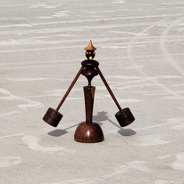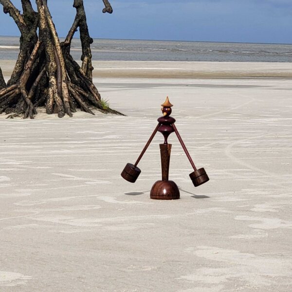 Peça lúdica e divertida representando o palhaço equilibrista, produzida em madeira por seu Fernando de Belém do Pará.
