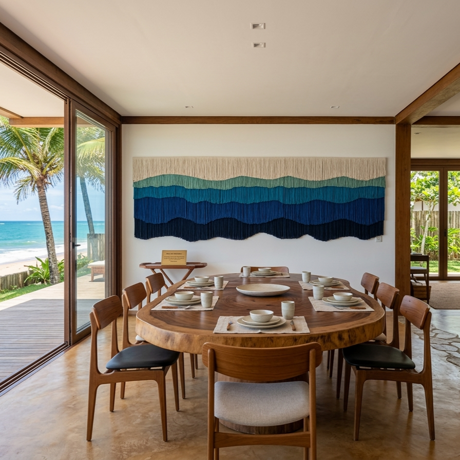 Mais do que um simples artesanato, o macramê adquiriu um estatuto de sofisticação no design contemporâneo. Quando aplicado em peças decorativas — como painéis de parede, cortinas, luminárias ou suportes para plantas — ele confere ao ambiente uma estética refinada e artesanal, valorizada especialmente em projetos de interiores que privilegiam materiais naturais e acabamentos feitos à mão.