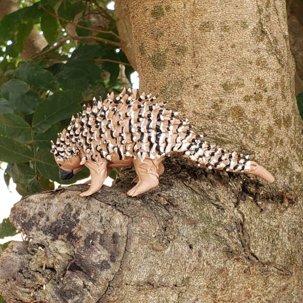 Reprodução de porco espinho campeiro com filhote, modelado manualmente em balata por artesão da etnia Macuxi na região de Boa Vista, Roraima.