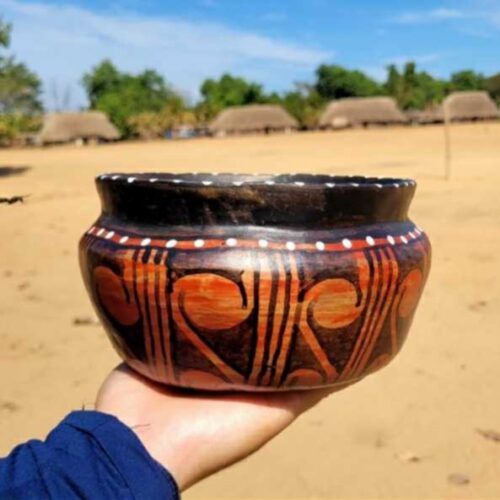 Pote em cerâmica produzido artesanalmente por artesã do povo Juruna, um grupo indígena do Pará, Brasil, e utilizada na culinária e para outras finalidades cotidianas.