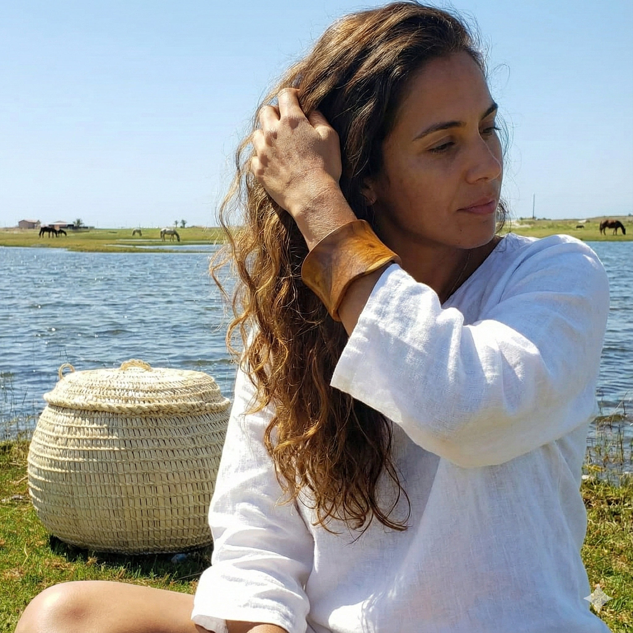 Ele dá formas geniais em braceletes, anéis, brincos e colares. Usa a madeira, chifre e osso de boi. Começou a trabalhar no artesanato de biojoias há dezesseis anos. O mercado de luxo de vários outros países conhecem suas peças, mesmo sem ter a noção do lugar em que ela é feita.