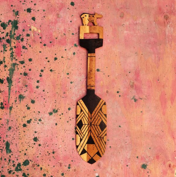 A venda de sua produção artesanal é uma das mais importantes fontes de renda da comunidade. A pintura aplicada nos remos traz o universo dos grafismos tradicionais deste povo, que usa em suas peças madeiras oriundas de manejo sustentável da floresta e pigmentos naturais.