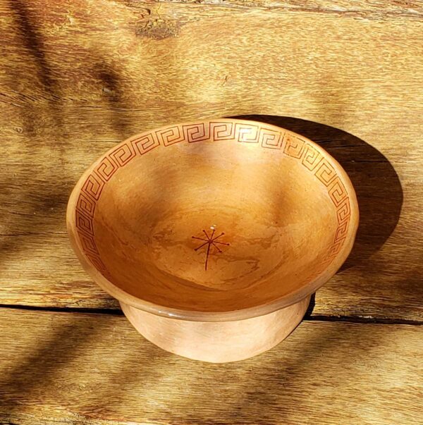 Após essa modelagem inicial, a ceramista define a forma dos potes com o auxílio de um pedaço de cuia, abrindo e estreitando as suas paredes por meio da raspagem. O resultado será uma peça mais leve e delicada. Em seguida, quando a peça atinge o “ponto de osso”, inicia-se o polimento utilizando pedras especiais, que trará brilho e ainda mais leveza aos potes.