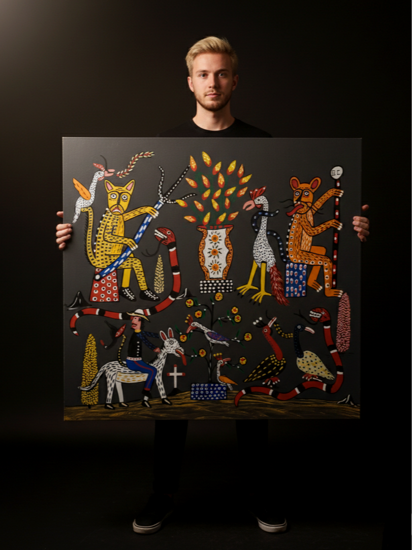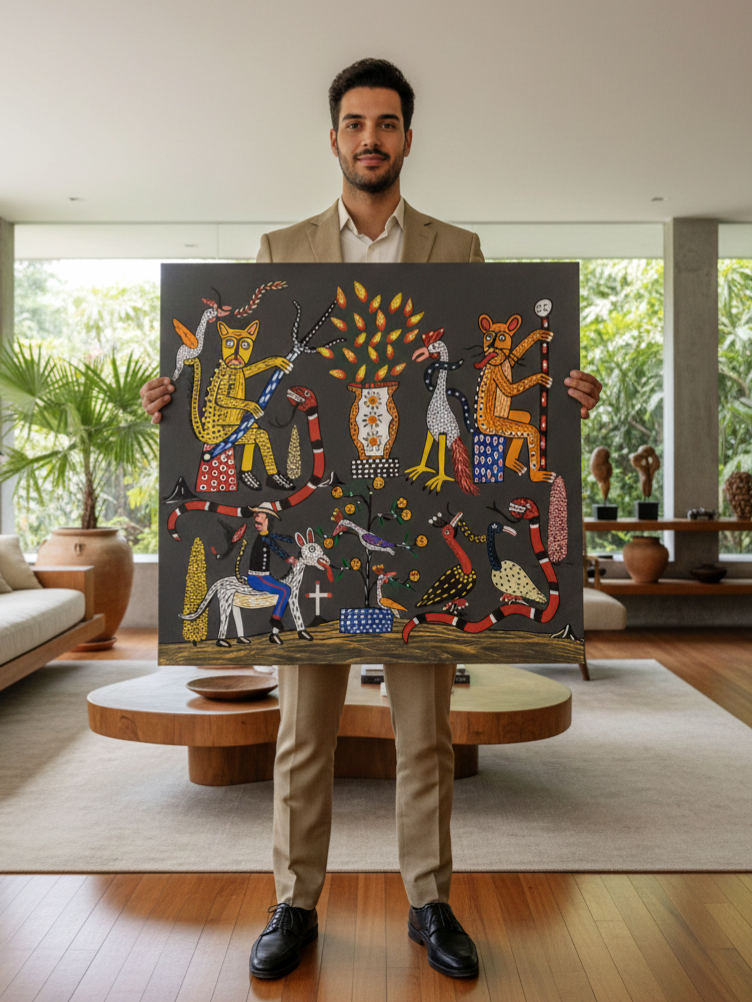 Geovani Cardoso, artista natural de Brejo Santo, no Ceará, é um dos grandes nomes emergentes na arte popular brasileira. Nascido em 1995, Geovani já acumula um impressionante repertório de obras que misturam tradição e inovação, refletindo a rica herança cultural de sua família.