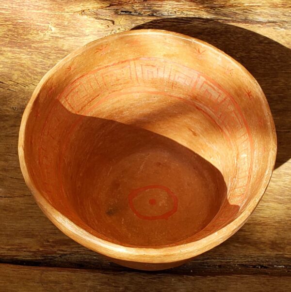 Após a queima, as peças se transformam completamente: antes de cor cinza, com padrões pintados em amarelo, tornam-se claras, com padrões vermelho-alaranjados. A mudança de cor do pigmento é resultante da oxidação dos minerais ferrosos presentes em sua composição.
